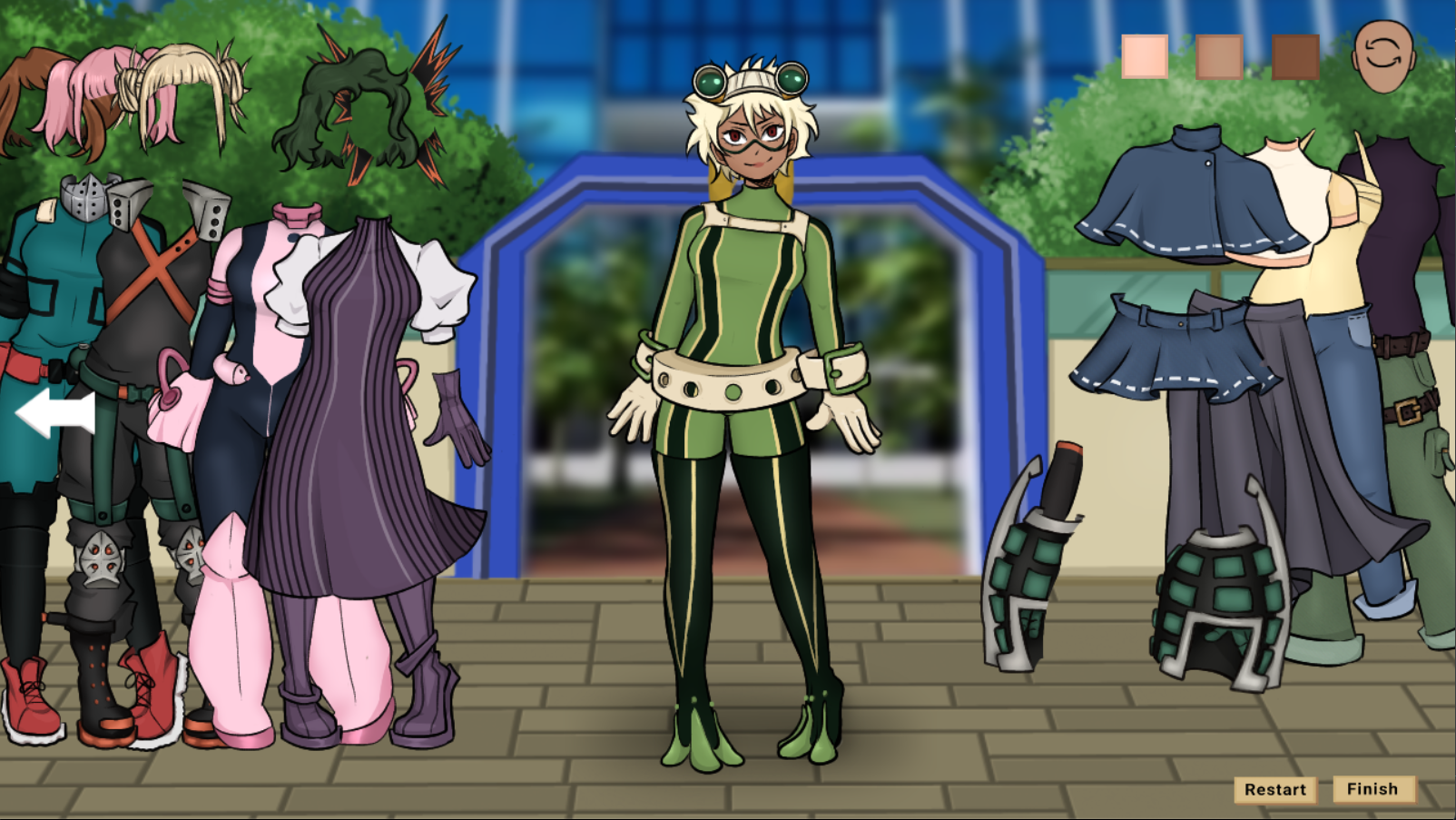 Dress up your hero or villain! Please let me know if there are any assets/mechanics you'd want in future games or this dress-up game :D